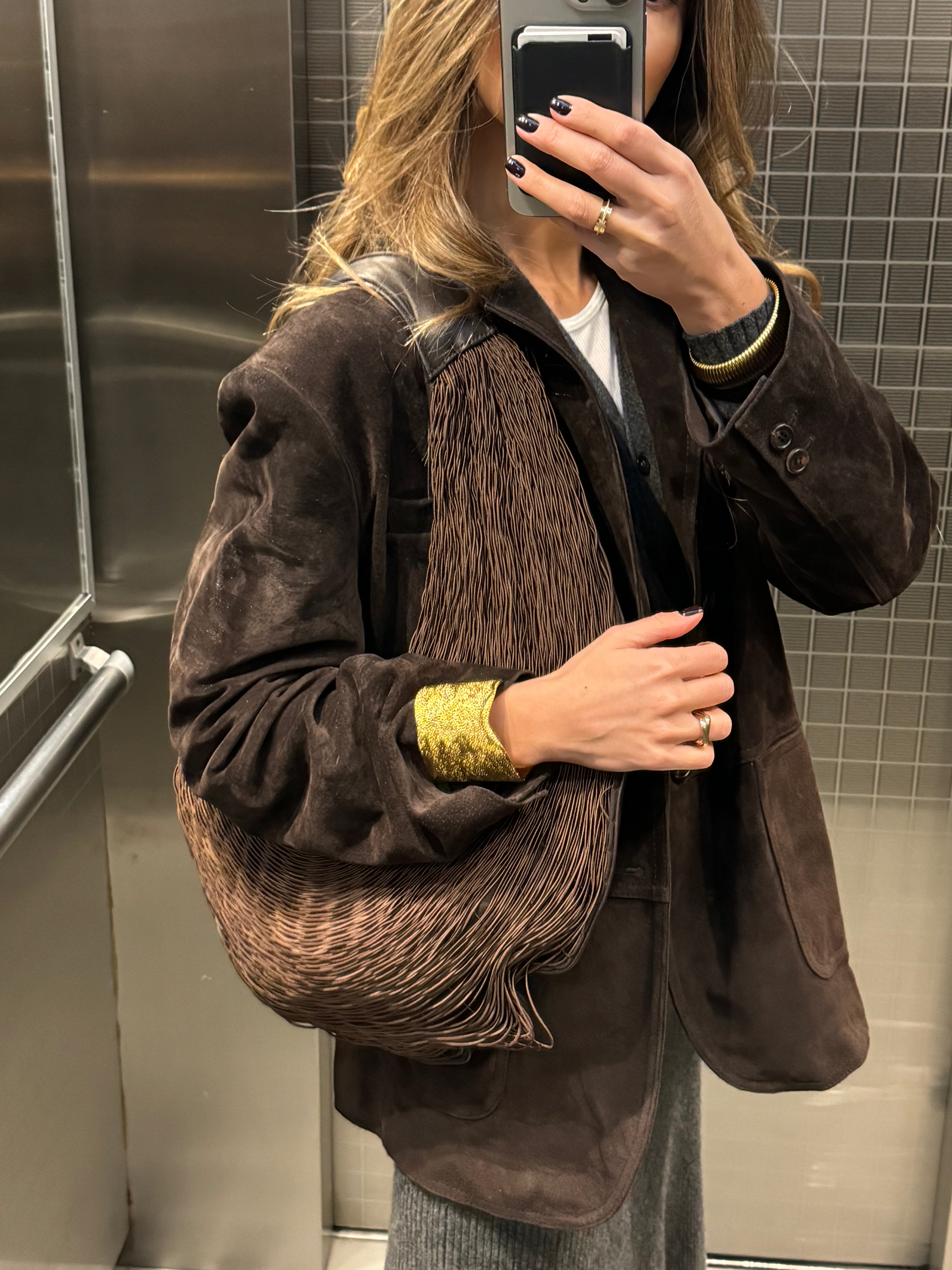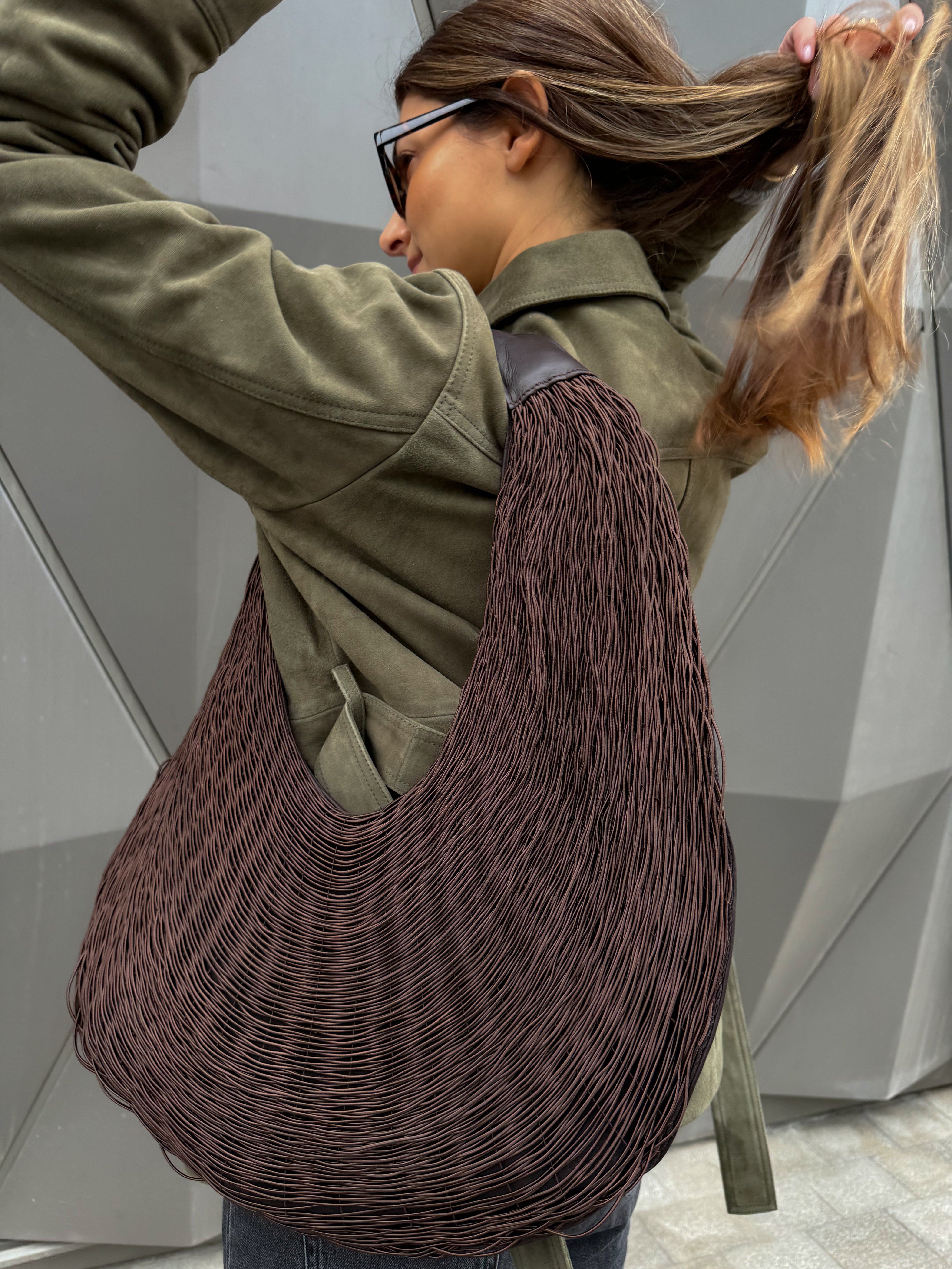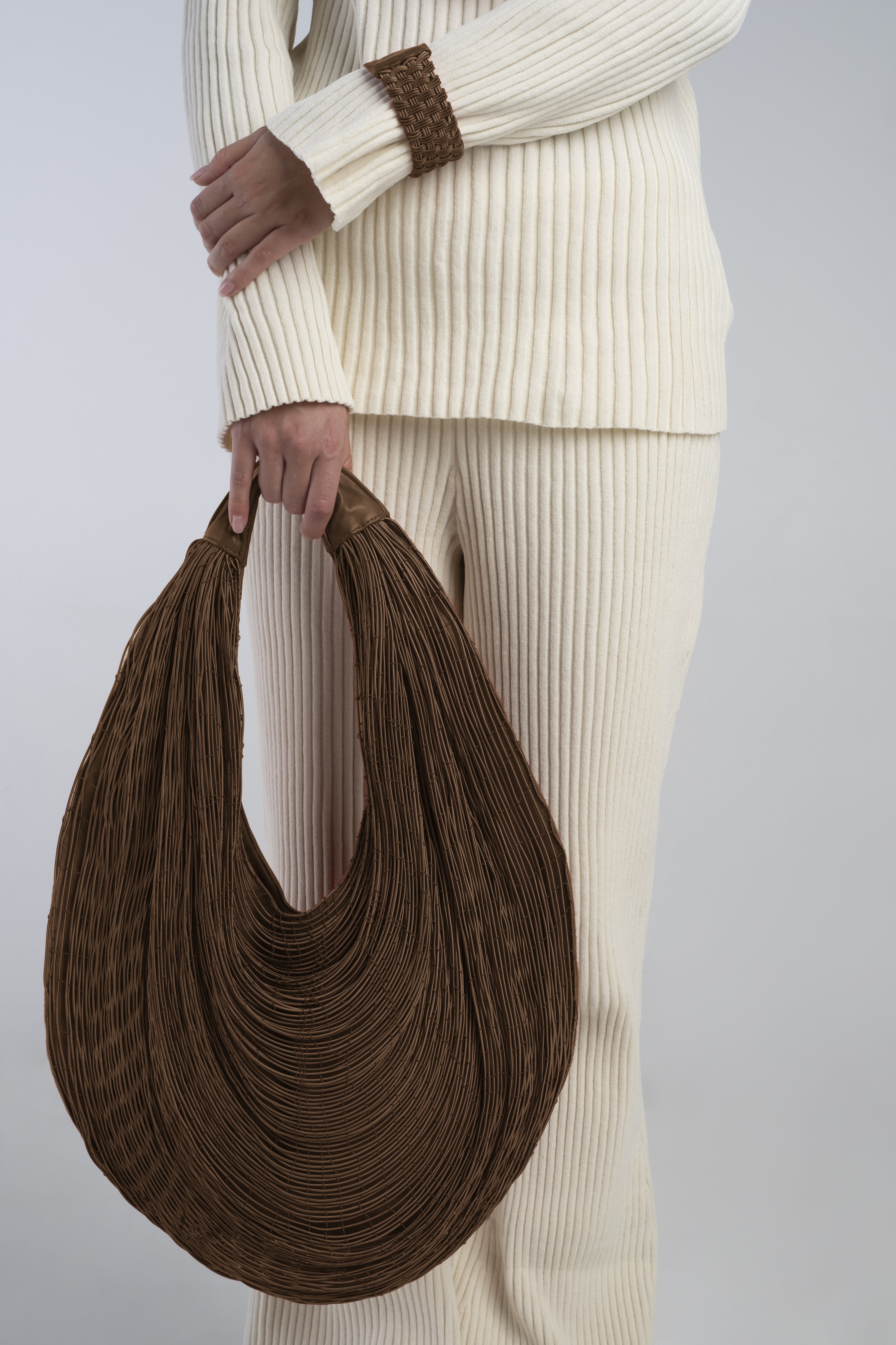 Our Bivalda Shoulder Bag is undoubtedly our all -time best seller - a bag that gracefully wraps around your body and instantly captures the attention of everyone who sees it. Perfect for a special occasion where the look can remain simple, allowing the bag to say it all. The Bivalda features three compartments, ensuring that your essentials are perfectly organized without compromising its elegant, ergonomic shape.The triangular shape of the loom and the elasticity of the fiber with which it is woven gives rise to the rounded shape of the piece, which bears the name "Bivalda", in this case in a “shoulder bag” with perfect sizes for a day to day bag.