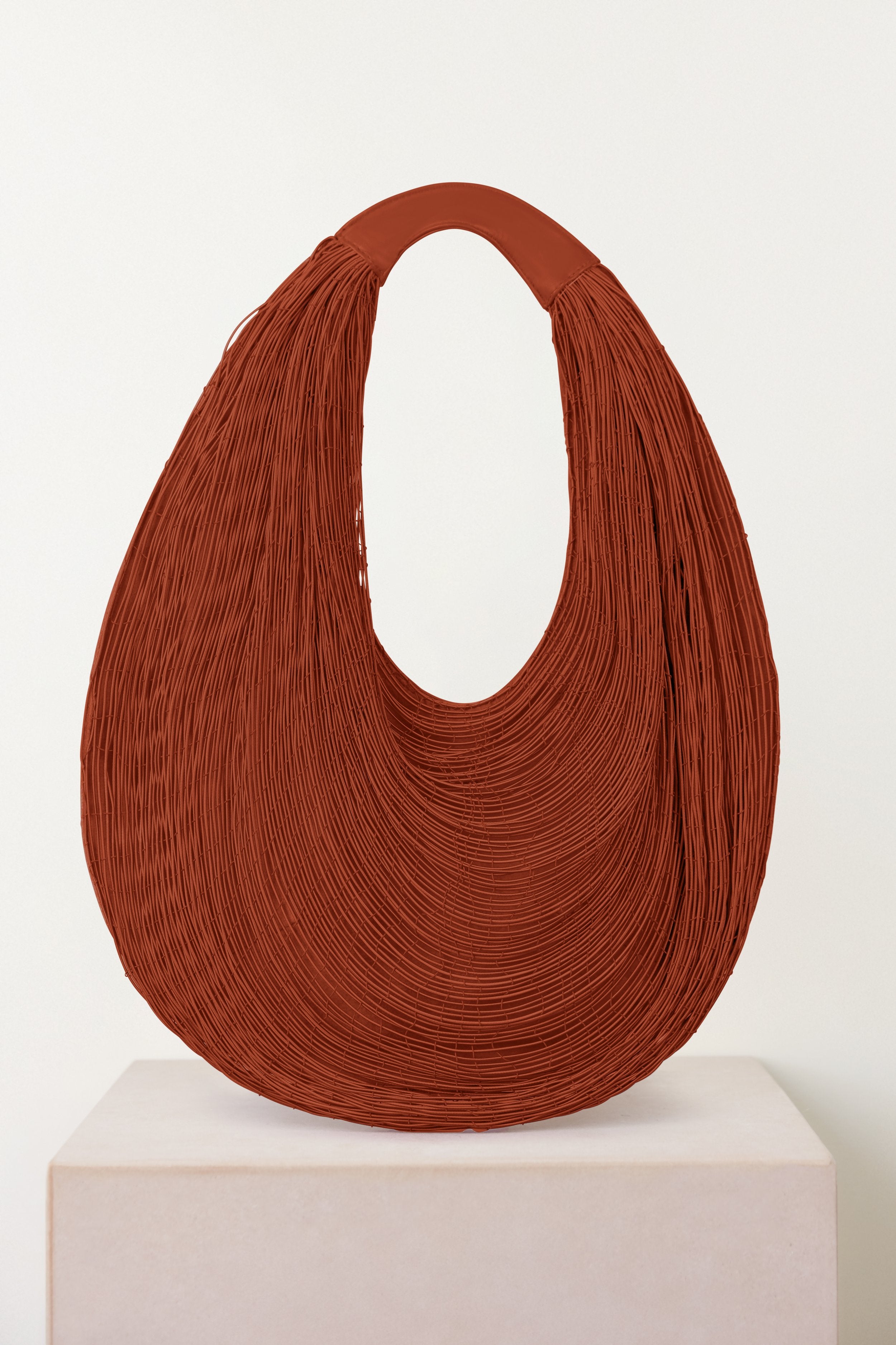 The triangular shape of the loom and the elasticity of the fiber with which it is woven gives rise to the rounded shape of the piece, which bears the name "Bivalda", in this case in a “shoulder bag” with perfect sizes for a day-to-day bag.