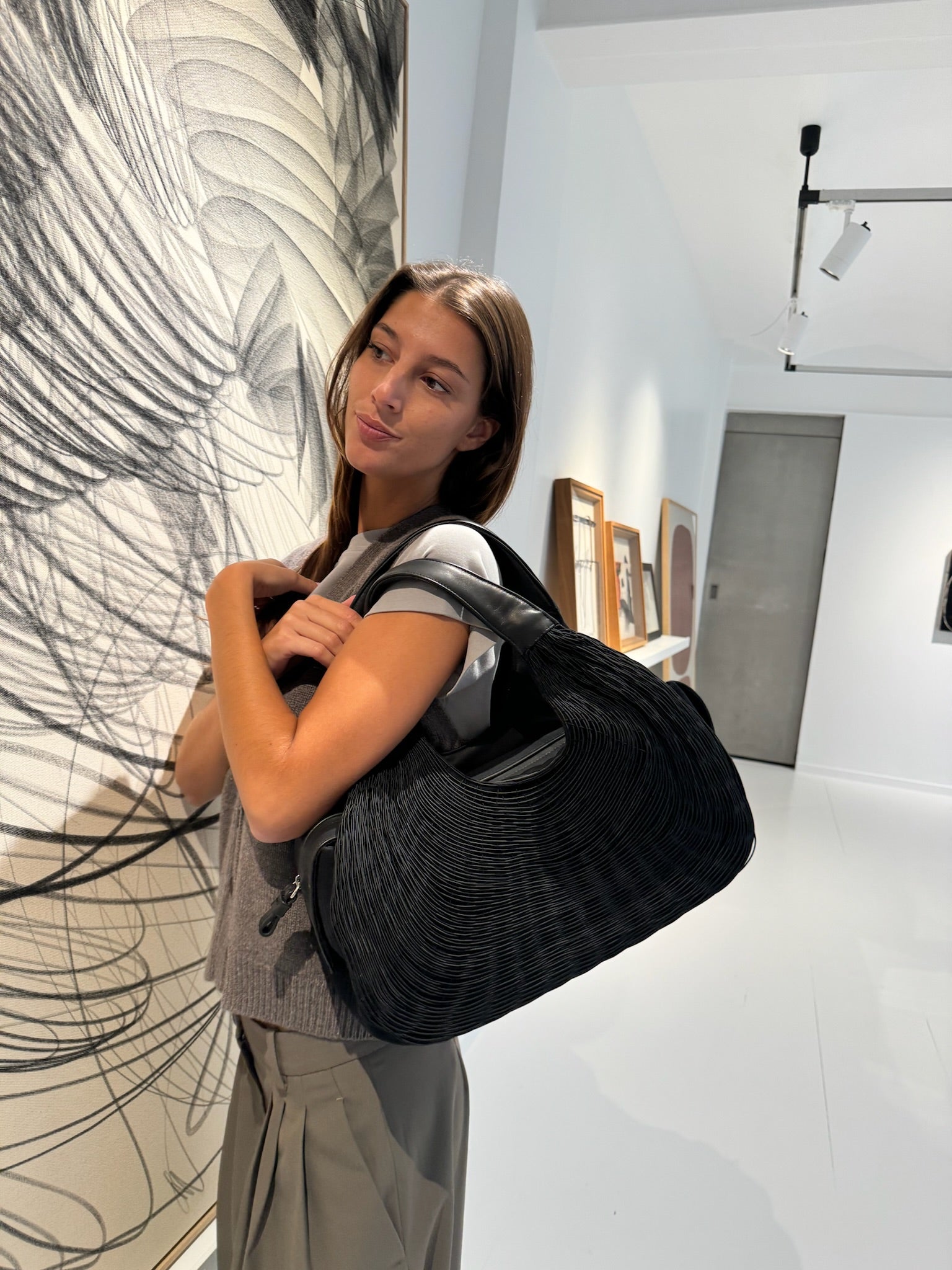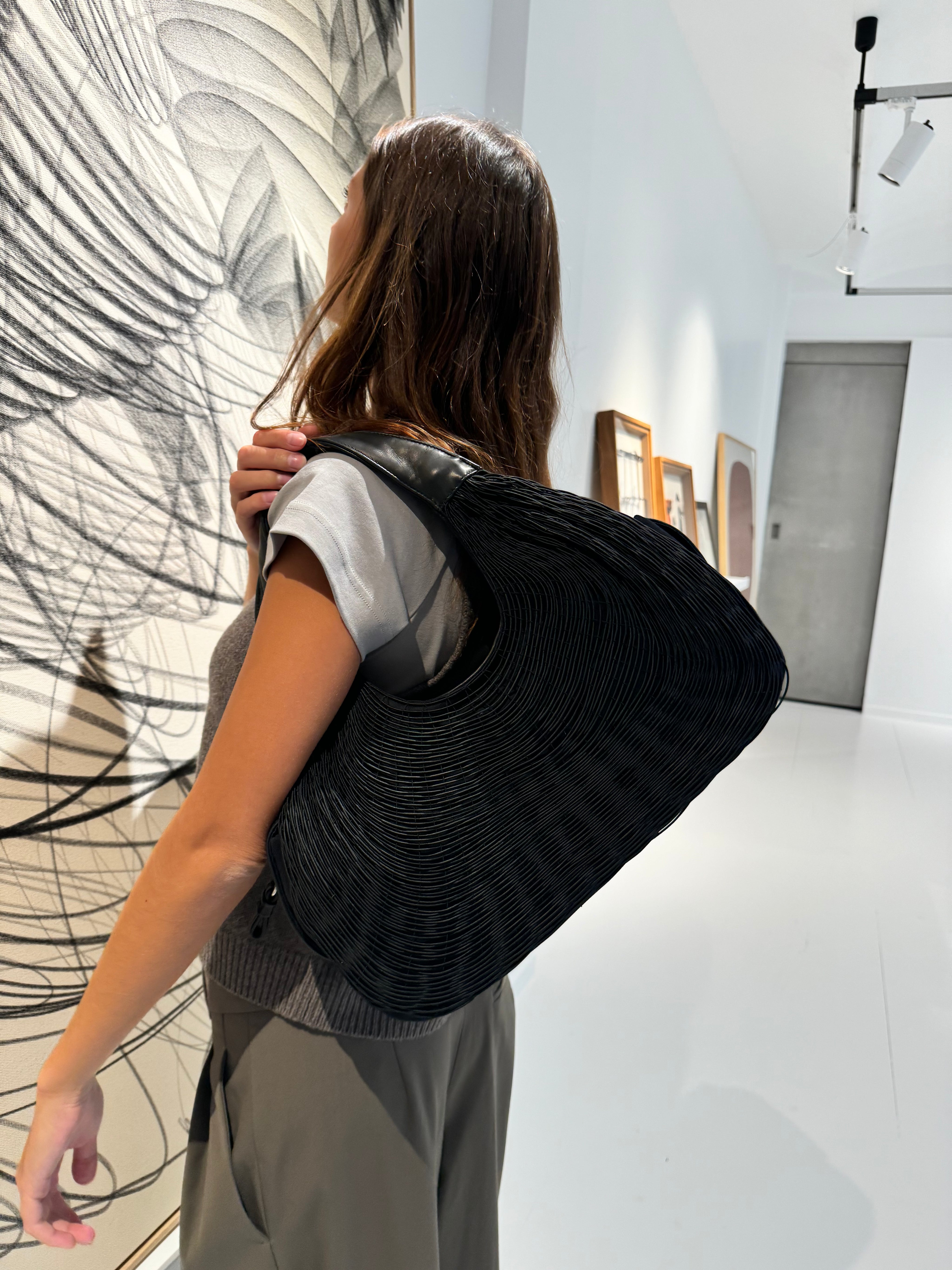 The same roundness of the iconic "Bivalda" shape achieved from our triangular loom is, in this case, taken to a utilitarian piece for day-to-day use, Especially for a versatile, active, and striking woman.