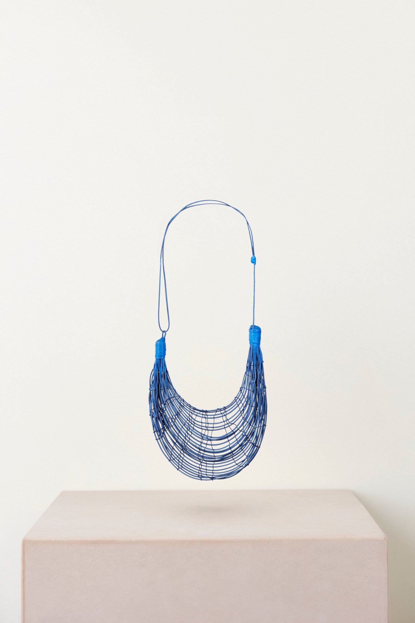 The smaller size is ideal for everyday use and is adjustable to different heights depending on the type of collar your clothes wear, and It is characterized by its lightness. The triangular shape of the loom and the elasticity of the fiber with which it is woven gives rise to the rounded shape of the piece.