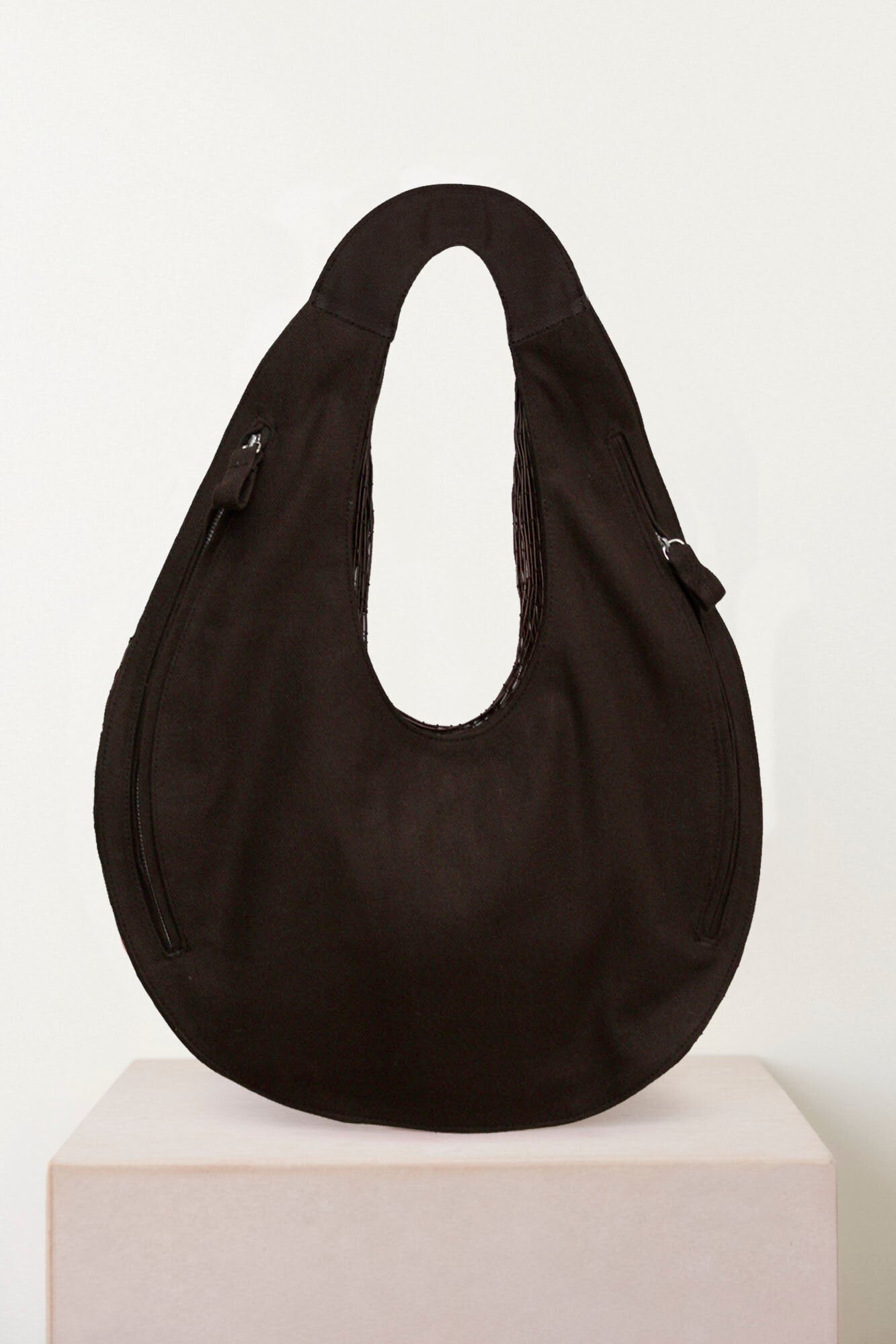 The triangular shape of the loom and the elasticity of the fiber with which it is woven gives rise to the rounded shape of the piece, which bears the name "Bivalda", in this case in a “shoulder bag” with perfect sizes for a day to day bag.